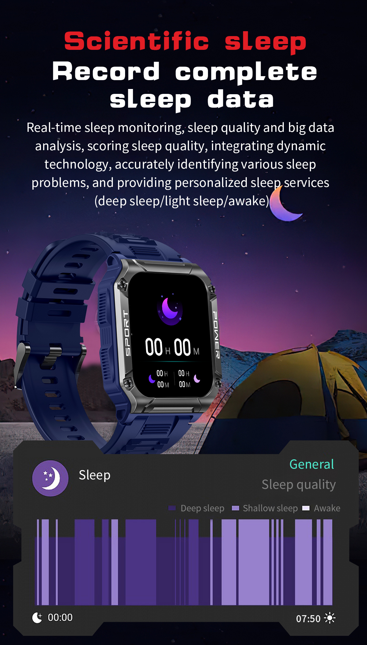 Designed for adventure, this smartwatch boasts an impressive IP68 waterproof rating, making it the perfect companion for any outdoor activity. Whether you're swimming, hiking, or simply caught in the rain, your smartwatch will keep ticking.